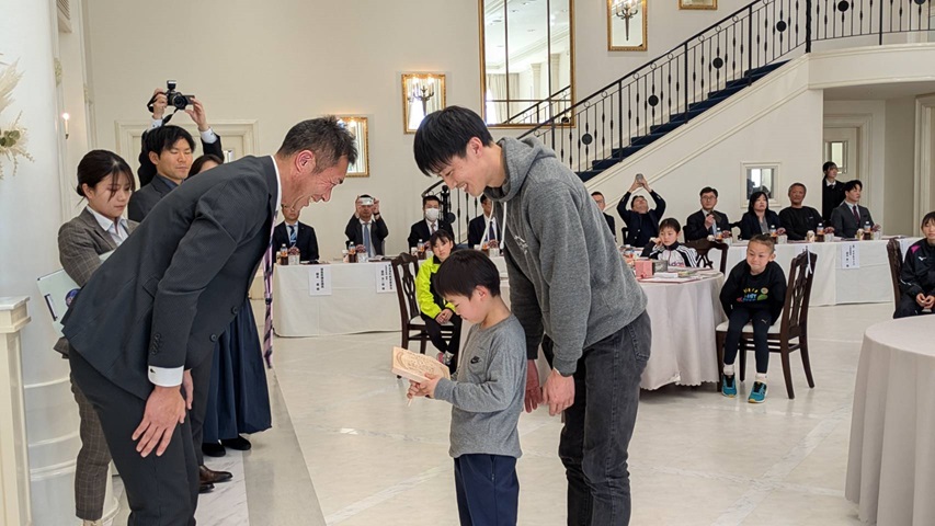 受賞者の子どもたち24名と、親御さん、保護者、チームの監督・コーチ、さらには、御来賓として、福島県議会議員、開催地の行政機関の皆さま、協賛企業の皆さまにもご臨席を賜りました。