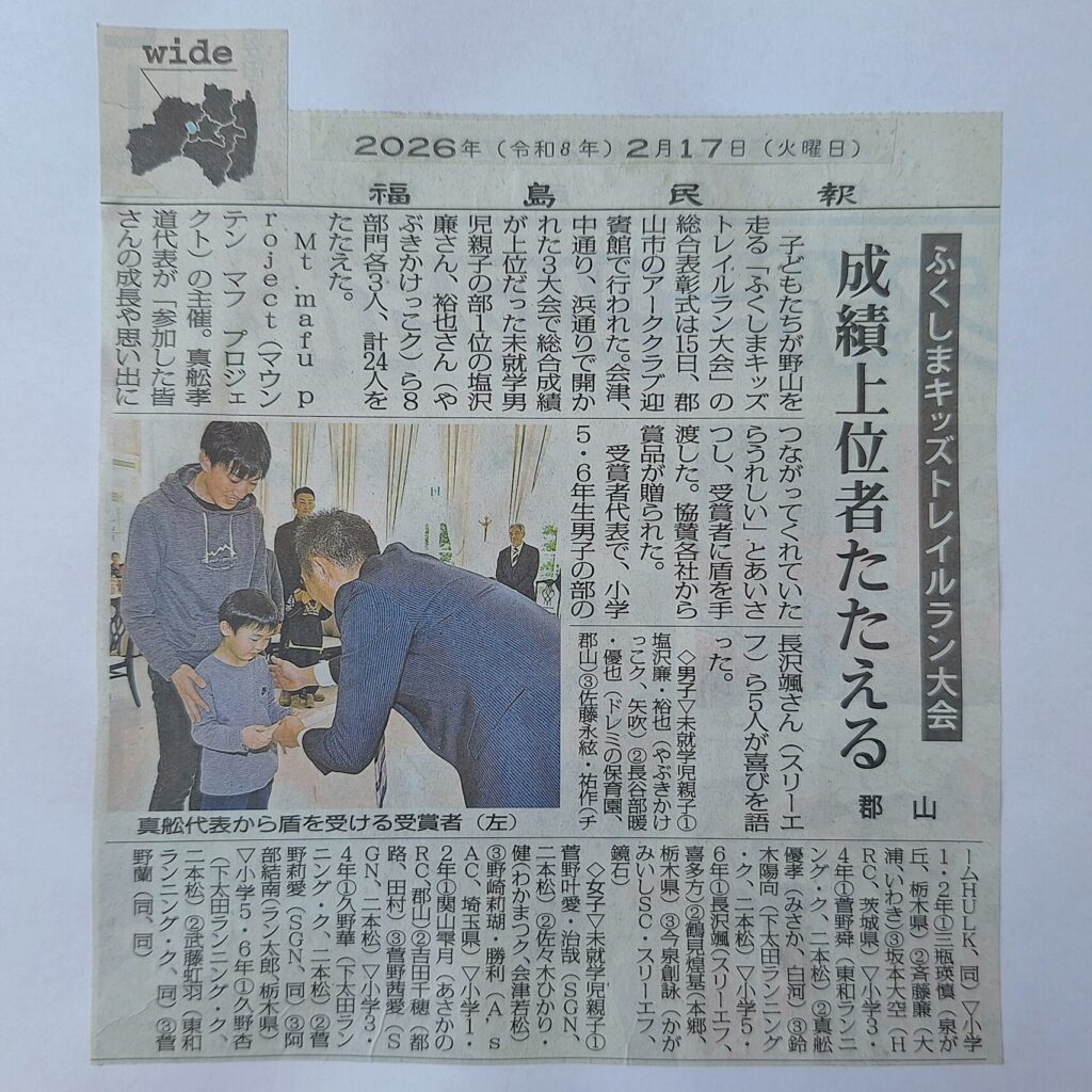 この「ふくしまキッズトレイルラン大会」で得た経験を今後の人生に活かしていって欲しいものです。