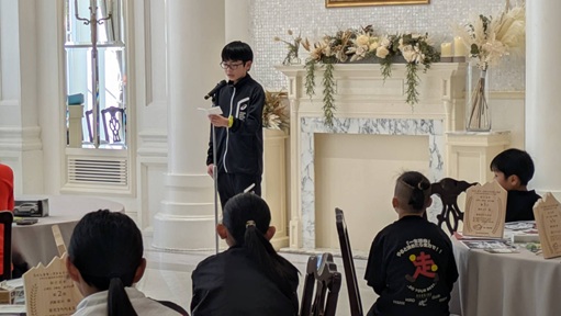 最高学年(6年生)の男女5名には、受賞者を代表して、シリーズ戦の振り返りの言葉をいただきました。